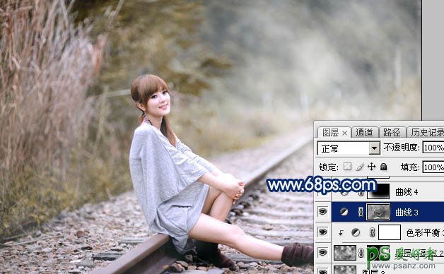 10、按Ctrl + Alt + 2 调出高光选区,按Ctrl + Shift + I 反选得到暗部选区,然后创建曲线调整图层,对RGB,红通道进行调整,参数及效果如下图。这一步把图片暗部稍微调暗一点,并减少红色。