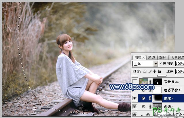 11、创建曲线调整图层,对RGB通道进行调整,参数设置如图23,确定后把蒙版填充黑色,再用白色画笔把左侧及底部区域擦出来,效果如图24。这一步把图片局部调暗。