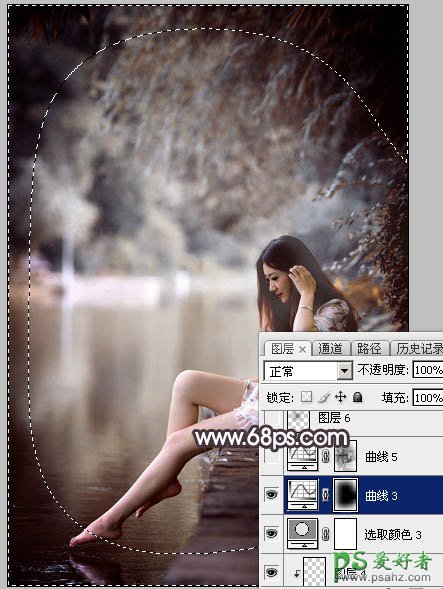 PS美女图片调色:给湖边自拍的玉腿美足清纯少女写真照调出梦幻色