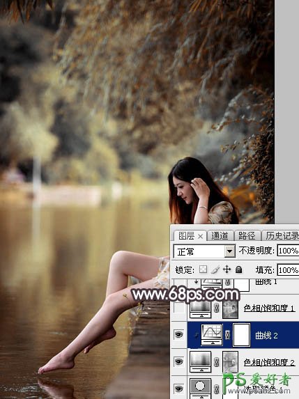 PS美女图片调色:给湖边自拍的玉腿美足清纯少女写真照调出梦幻色