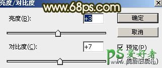 13、创建亮度/对比度调整图层,适当增加亮度及对比度,参数设置如图31,确定后创建剪切蒙版,效果如图32。