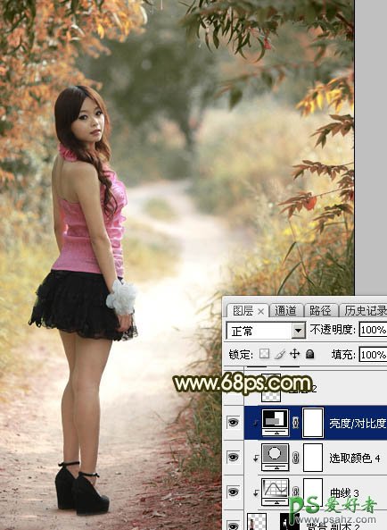Photoshop给树林中自拍的小清新女孩儿生活照调出柔和的秋季暖色