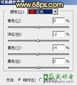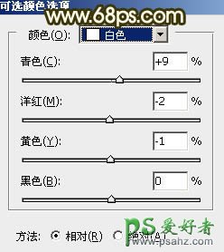 18、创建可选颜色调整图层,对红、黄、白进行调整,参数及效果如下图。这一步微调图片中的暖色及高光颜色。