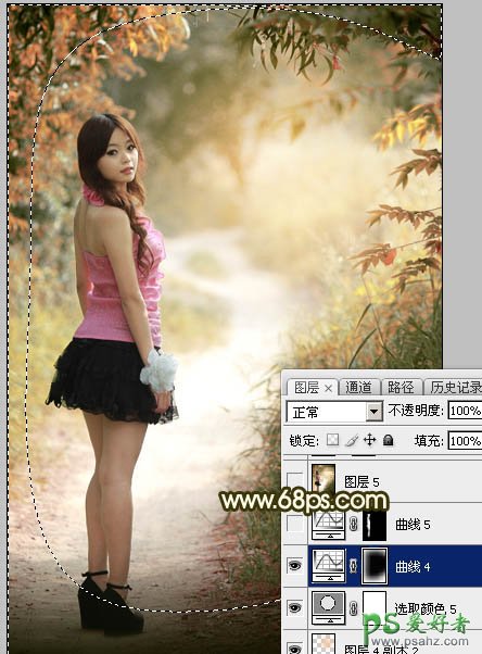 Photoshop给树林中自拍的小清新女孩儿生活照调出柔和的秋季暖色