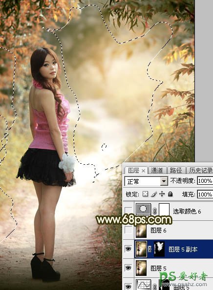 Photoshop给树林中自拍的小清新女孩儿生活照调出柔和的秋季暖色