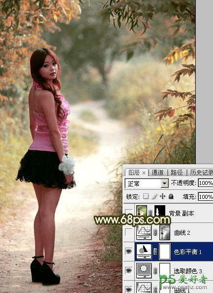 Photoshop给树林中自拍的小清新女孩儿生活照调出柔和的秋季暖色