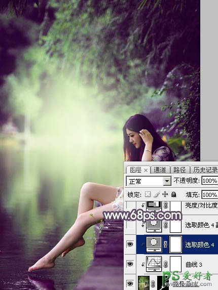 PS调色教程:给外景自拍的美腿少女唯美图片调出梦幻的紫色调