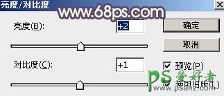 14、创建亮度/对比度调整图层,参数设置如图33,确定后创建剪切蒙版,效果如图34。这一步增加肤色调亮。