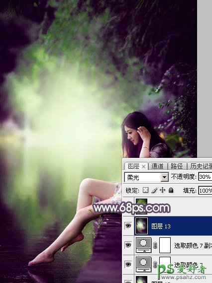 21、新建一个图层,盖印图层。选择菜单:滤镜 > 模糊 > 动感模糊,数值默认,确定后把混合模式改为“柔光”,不透明度改为:30%,效果如下图。