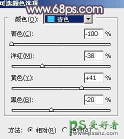 1、打开原图素材大图,创建可选颜色调整图层,对绿色,青色进行调整,参数及效果如下图。这一步把图片中的绿色和青色调暗一点。