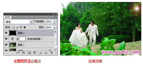 1.运用“色相/饱和度”调整图层调整图像饱和度。