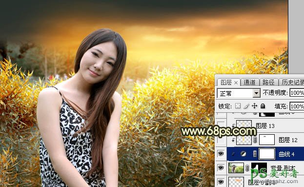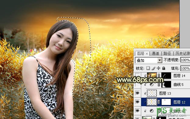 18、新建一个图层,混合模式改为“叠加”,然后创建剪切蒙版。把前景色设置为橙黄色:#FBDD7F,用透明度较低柔边画笔把人物右侧受光区域涂上高光,效果如下图。