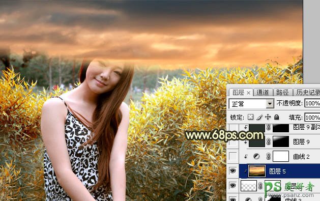 9、打开天空素材,拖进来,调整好位置后按Ctrl + Alt + G 创建剪切蒙版,效果如下图。