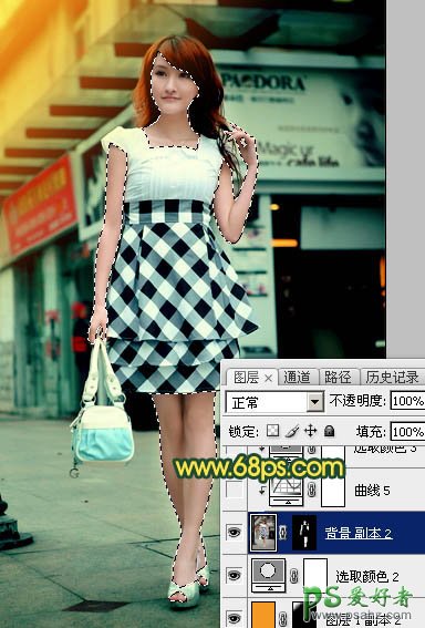 14、把背景图层复制一层,按Ctrl + Shift + ] 置顶,用钢笔工具把人物脸部及肤色部分抠出来,转为选区后添加图层蒙版,如下图。