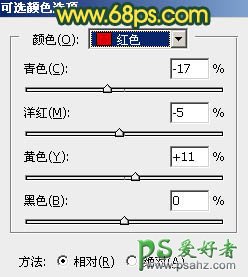 16、创建可选颜色调整图层,对红、黄、白进行调整,参数设置如图39 - 41,确定后创建剪切蒙版,效果如图42。这一步给肤色高光区域增加淡黄色。