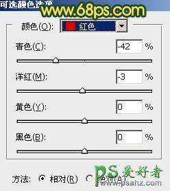 17、再创建可选颜色调整图层,同样对红、黄、白进行调整,参数设置如图43 - 45,确定后创建剪切蒙版,效果如图46。这一步把肤色稍微调红润一点。