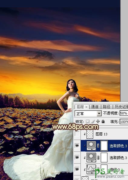 18、按Ctrl + J 把当前可选颜色调整图层复制一层,然后创建剪切蒙版,再把不透明度改为:50%,效果如下图。