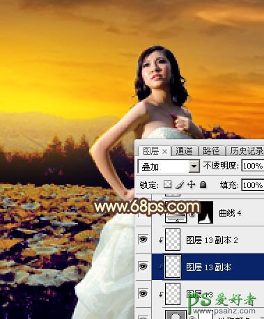 20、按Ctrl + J 把当前图层复制一层,创建剪切蒙版后把混合模式改为“叠加”,如下图。