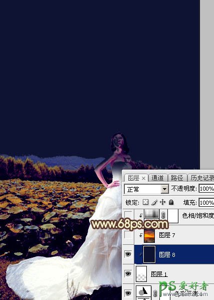 10、创建纯色调整图层,颜色设置为暗蓝色:#0E1333,确定后按Ctrl + Alt + G 创建剪切蒙版,效果如下图。