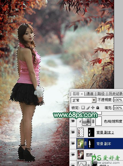 13、把背景图层复制一层,按Ctrl + Shift + ] 置顶,用钢笔工具把人物部分抠出来,转为选区后添加图层蒙版,效果如下图。
