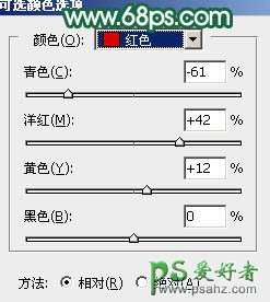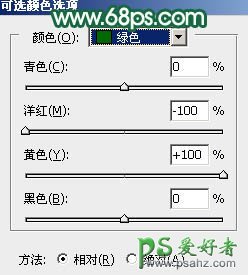 8、创建可选颜色调整图层,对红、黄、绿、白进行调整,参数设置如图20 - 23,效果如图24。这一步给图片增加橙红色。