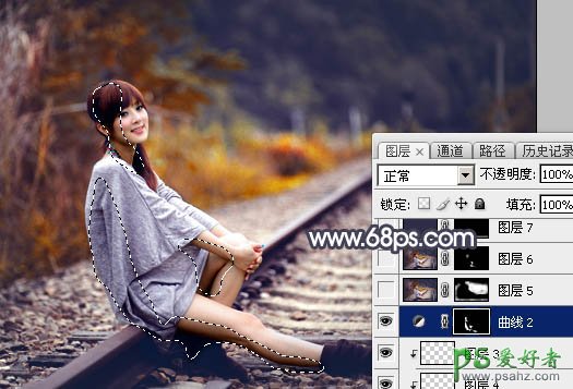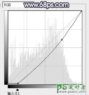 15、创建曲线调整图层,把全图压暗一点,参数设置如图32,确定后把蒙版填充黑色,然后用透明度较低柔边白色画笔把人物背光区域擦出来,效果如图33。