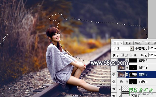 16、新建一个图层,盖印图层,用模糊工具把下图选区部分模糊处理。
