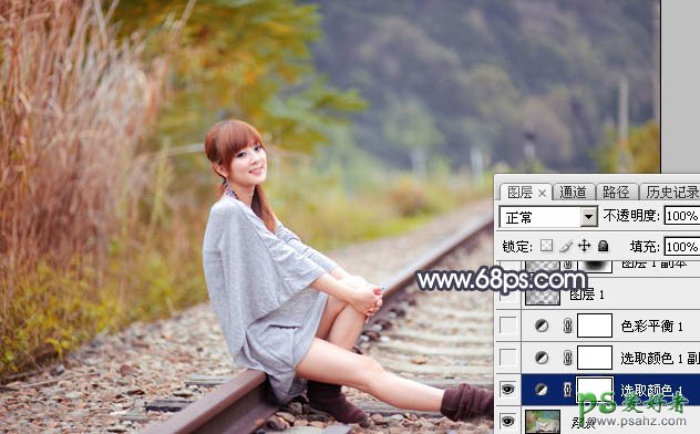 Photoshop给荒野中自拍的唯美意境女生写真图片调出冷调秋景...