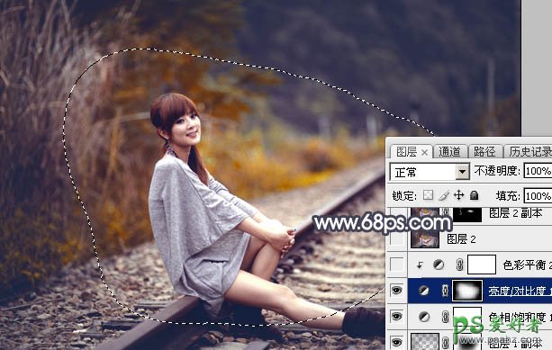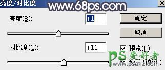 7、创建亮度/对比度调整图层,适当增加亮度及对比度,参数设置如图16,确定后把蒙版填充黑色,然后用透明度较低的柔边白色画笔把中间区域擦出来,效果如图17。这一步增加中间区域明暗对比。