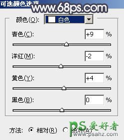 13、创建可选颜色调整图层,对红色,白色进行调整,参数设置如图26,27,确定后创建剪切蒙版,效果如图28。这一步把肤色部分的红色调暗一点,并加强高光颜色。