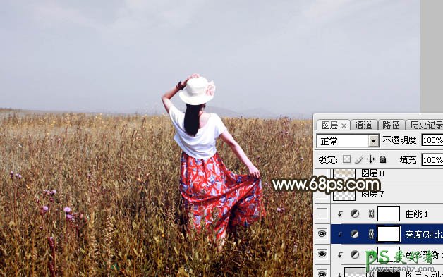 14、创建亮度/对比度调整图层,参数设置如图32,确定后创建剪切蒙版,效果如图33。