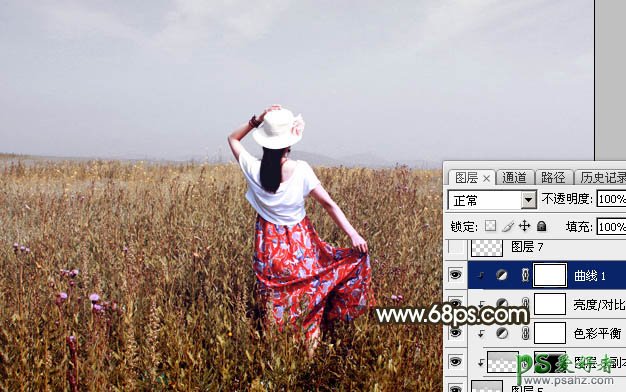 15、创建曲线调整图层,对RGB通道进行调整,增加明暗对比,参数设置如图34,确定后创建剪切蒙版,效果如图35。这几步调整天空部分的颜色。