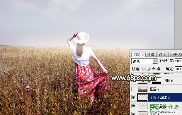 18、按Ctrl + J 把当前图层复制一层,按Ctrl + T 稍微调整一下大小,确定后把图层不透明度改为:50%,效果如下图。这几步给地平线部分增加高光。