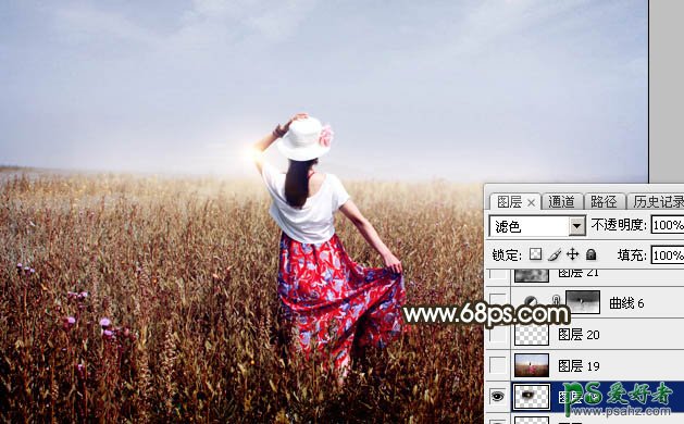 PS漂亮女生图片调色:给外景自拍的女生艺术照调出傍晚黄昏的...