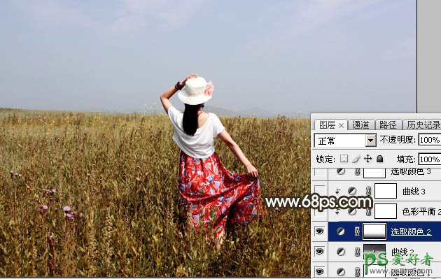 Photoshop给荒野中自拍的唯美意境女生写真图片调出冷调秋景色,素材图片为夏季图片,转秋季色的时候把草地部分的颜色转为较暗的中性黄褐色;最后我们再给天空部分加一点淡蓝色,让整体效果变得更加梦幻,喜欢的朋友们好好学习一下吧! 原图 最终效