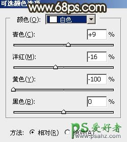 6、创建可选颜色调整图层,对红、黄、白进行调整,参数设置如图16 - 18,效果如图19。这一步给图片增加红褐色,高光区域增加淡蓝色。