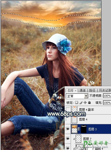 14、把天空图层复制一层,按Ctrl + Shift + ] 置顶,按住Alt键添加图层蒙版,用透明度较低的柔边白色画笔把天空与地面的衔接区域擦出来,效果如下图。