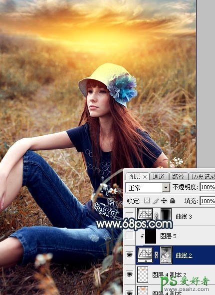 18、按Ctrl + Alt + 2 调出高光选区,按Ctrl + Shift + I 反选得到暗部选区,然后创建曲线调整图层,对RGB、绿、蓝通道进行调整,参数及效果如下图。这一步把图片暗部调暗一点,并增加蓝紫色。