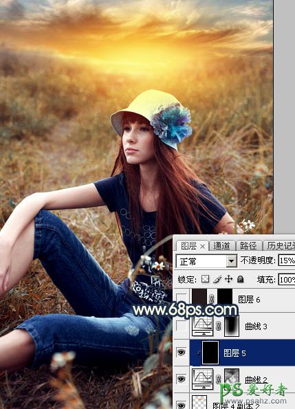 19、创建纯色调整图层,颜色设置为黑色,确定后创建剪切蒙版,再把不透明度改为:15%,效果如下图。这一步给图片暗部增加黑色。