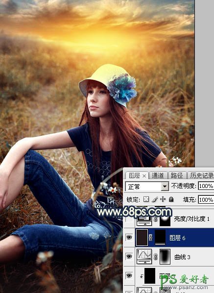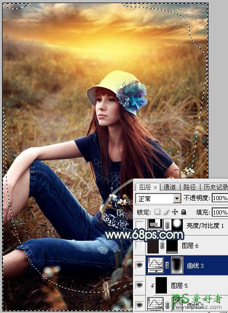 20、创建曲线调整图层,把RGB通道调暗一点,参数设置如图34,确定后把蒙版填充黑色,然后用白色柔边画笔把左右两侧及底部区域擦出来,效果如图35。这一步给图片增加暗角。