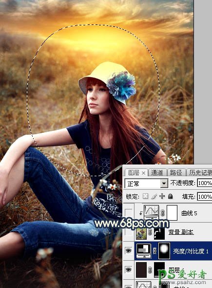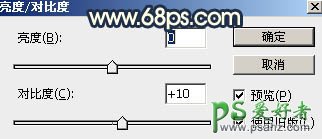 22、创建亮度对比度调整图层,适当增加对比度,参数设置如图37,确定后把蒙版填充黑色,然后用柔边白色画笔把中间区域擦出来,如图38。