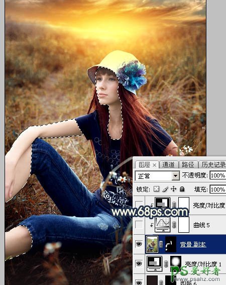 23、把背景图层复制一层,按Ctrl + Shift + ] 置顶,用钢笔工具把人物脸部及肤色部分抠出来,转为选区后添加图层蒙版,如下图。