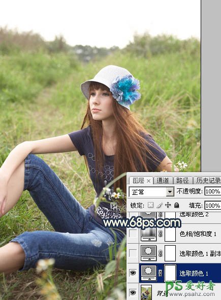 PS美女图片调色:给草丛中自拍的欧美女生照片调出柔和的晨曦霞光