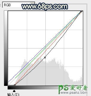 7、创建曲线调整图层,对RGB、红、绿、蓝通道进行调整,参数及效果如下图。这一步把图片稍微调暗一点,并减少暗部红色。