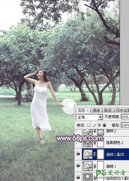 4、按Ctrl + J 把当前曲线调整图层复制一层,不透明度改为:10%,效果如下图。