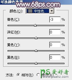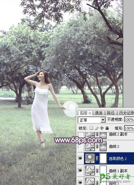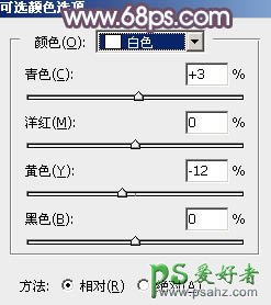 5、创建可选颜色调整图层,对黄、绿、青、白、中性色进行调整,参数设置如图7 - 11,效果如图12。这一步减少图片中的黄绿色,增加青蓝色。