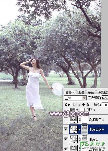 7、按Ctrl + J 把当前曲线调整图层复制一层,不透明度改为:50%,效果如下图。