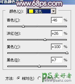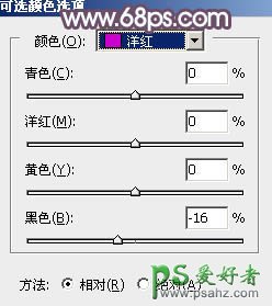 8、创建可选颜色调整图层,对黄、绿、蓝、杨红进行调整,参数设置如图18 - 21,效果如图22。这一步主要把图片中的蓝色调淡一点。