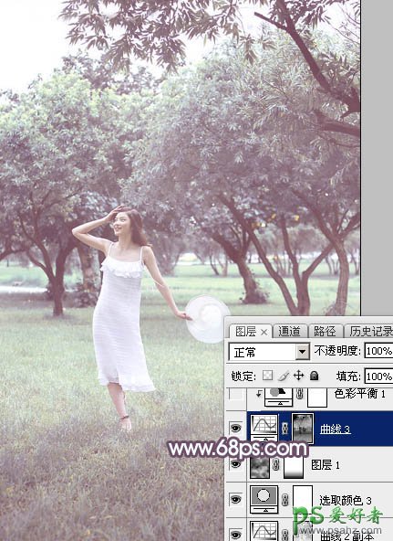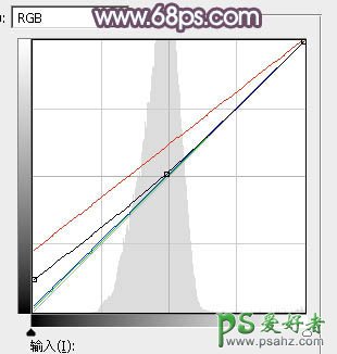 10、按Ctrl + Alt + 2 调出高光选区,按Ctrl + Shift + I 反选得到暗部选区,然后创建曲线调整图层,对RGB、红、绿、蓝通道进行调整,参数及效果如下图。这一步把图片暗部调淡,并增加红紫色。
