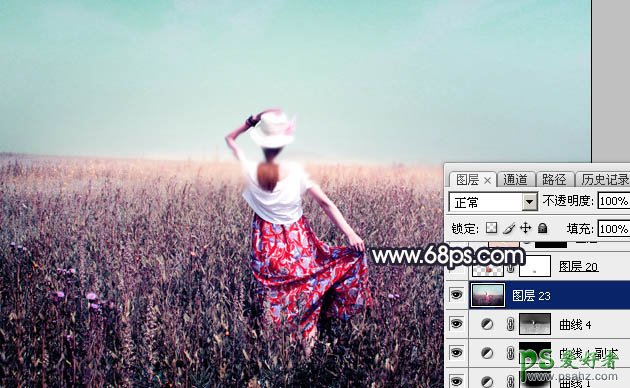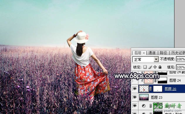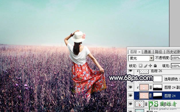 16、新建一个图层,按Ctrl + Alt + Shift + E 盖印图层,然后用模糊工具把天空与草地衔接部分模糊处理,效果如下图。